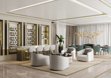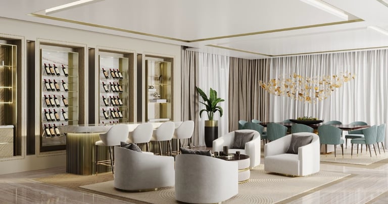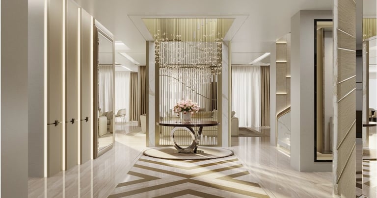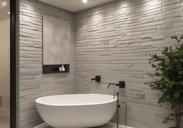 Aesthetic upgrades with high-quality wall panels, stone cladding, and niche installations.